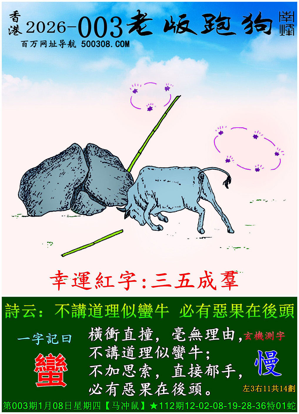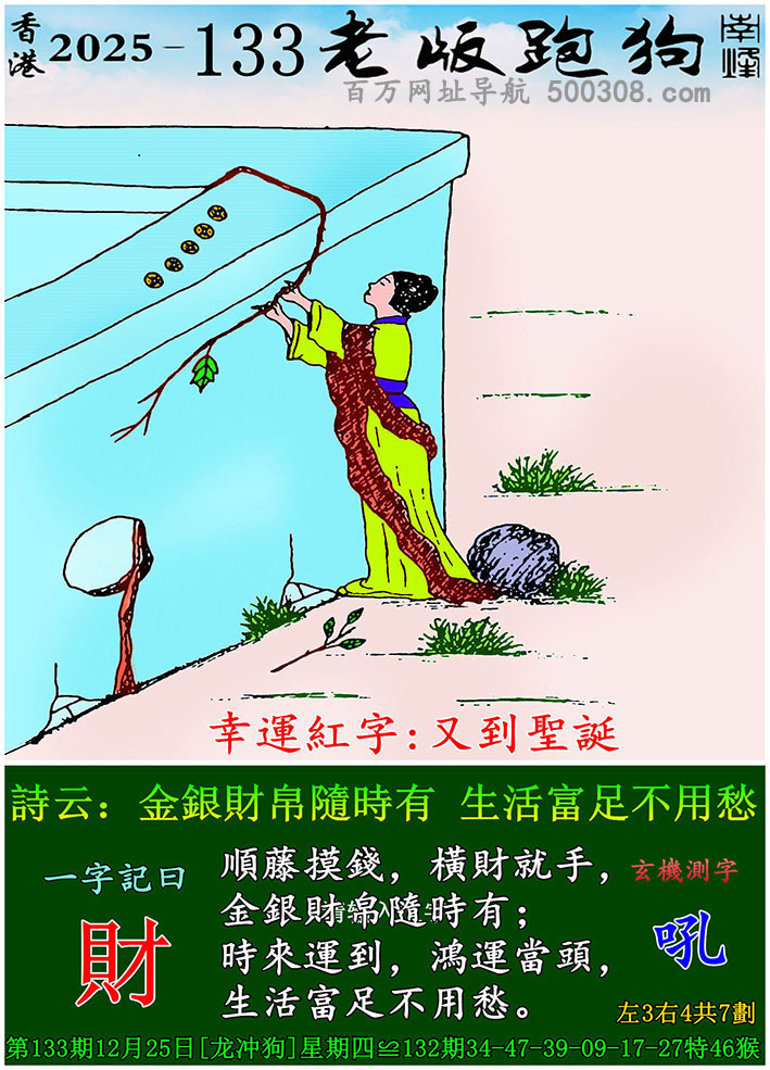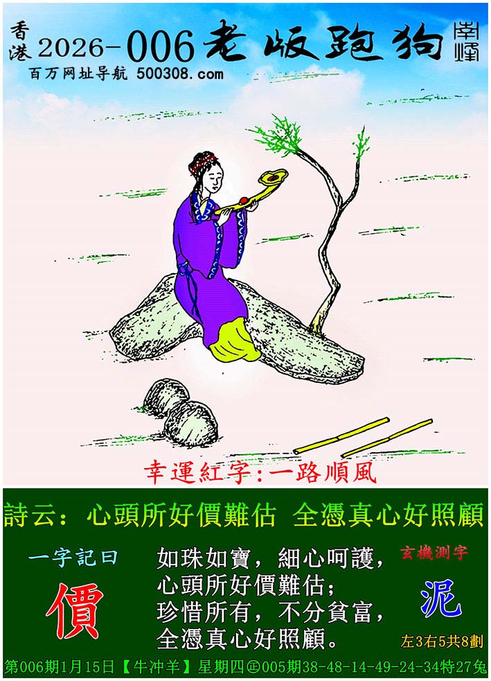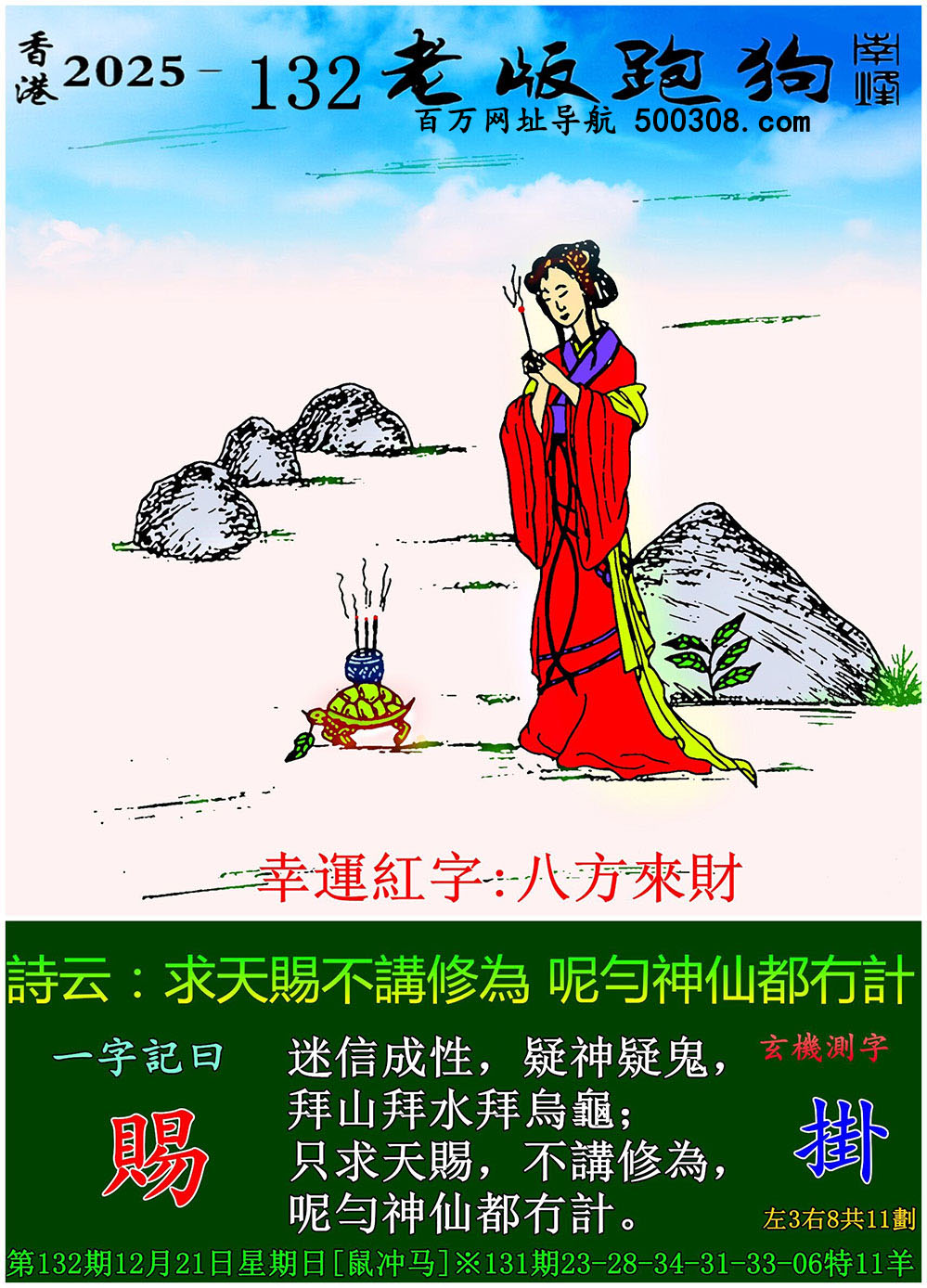 131期跑狗图:一字記之曰:【井】 井圈環疊,物各有適。 雙筐承殼,牛羊自安。 玄機測字:《洲》一語中特:四方八面